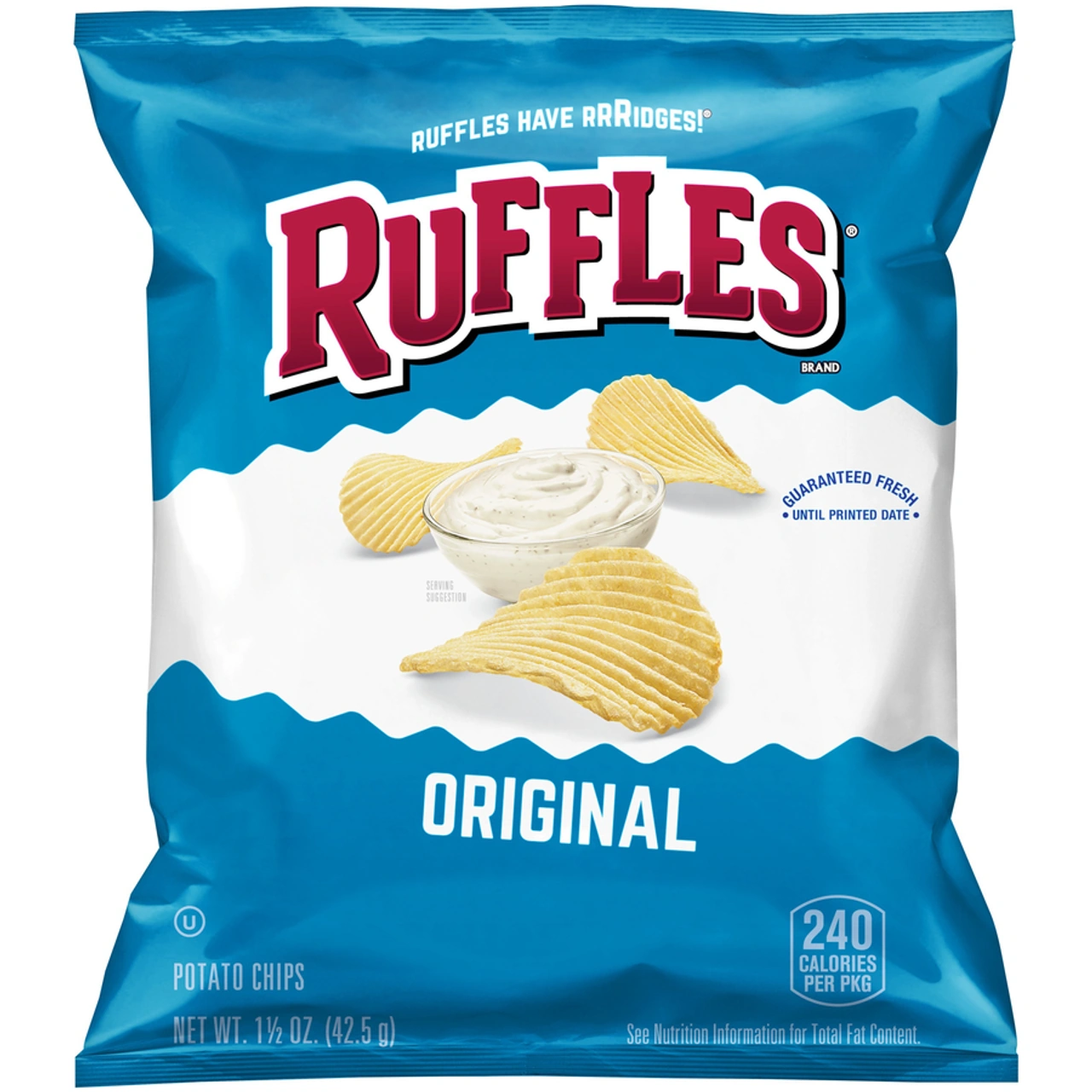 Ruffles are produced in a variety of flavors and presentations in addition to traditional potato chip flavors, although some of these variants are produced exclusively for regional markets. Existing varieties include: sour cream & onion, cheddar & sour cream, cheese, barbecue, salt & vinegar, cream cheese, and hot wings.